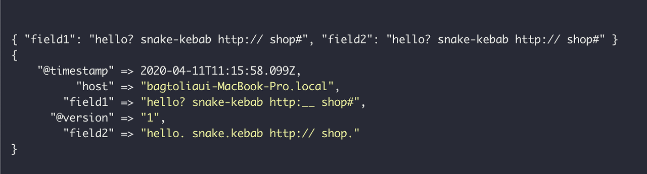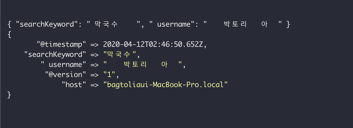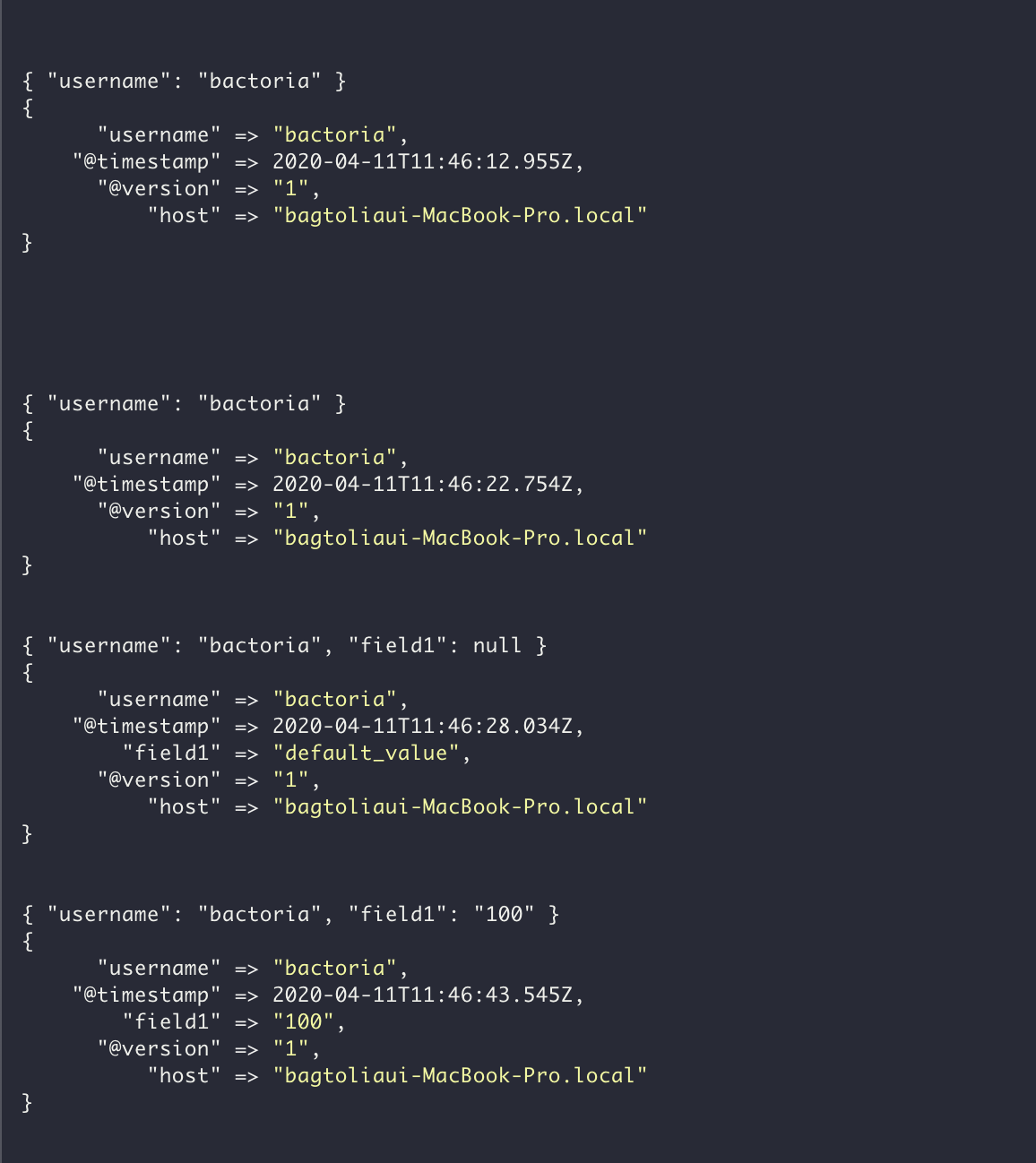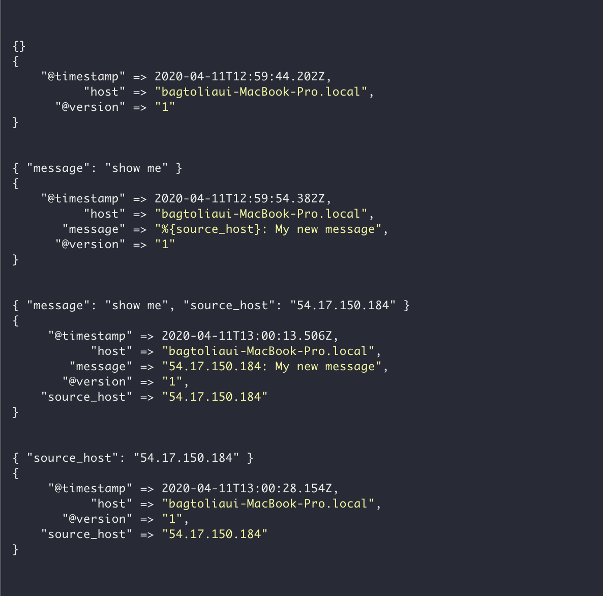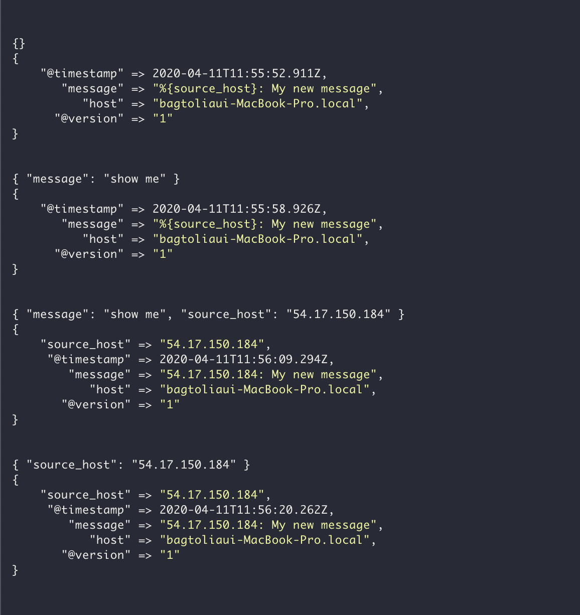 ex) input이 { } , { "source_host": "54.17.150.184" }인 경우 message 필드가 대체되었다.
