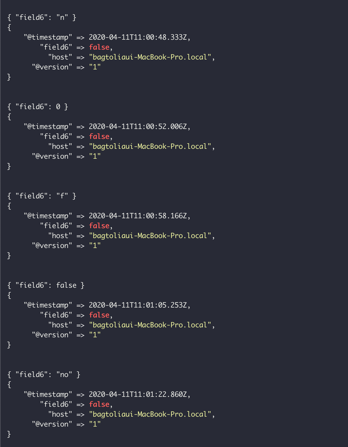 - true: 1, 1.0, "1", "1.0", “true”, "t", "yes", "y"