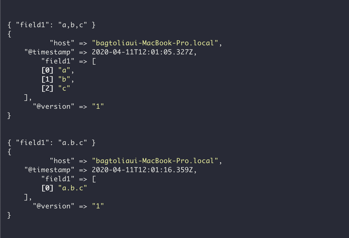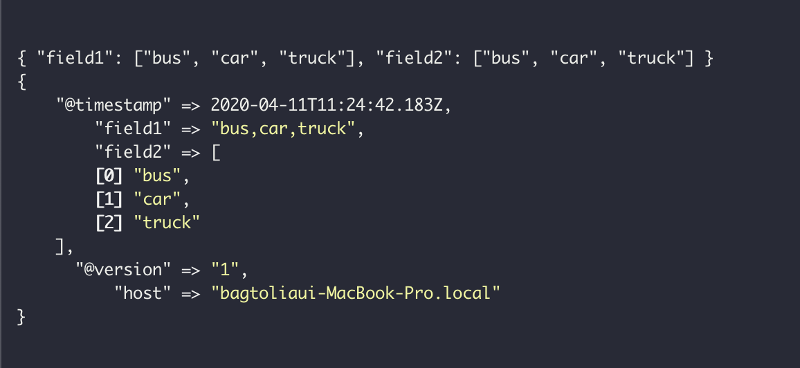 구분자가 해당 필드에 존재하지 않는 경우에도 필드는 배열로 바뀌는 것을 알 수 있다.