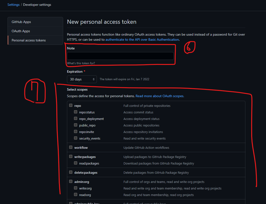 아래 내가 이 토큰으로 할 수 있는 권한을 설정해줍니다.