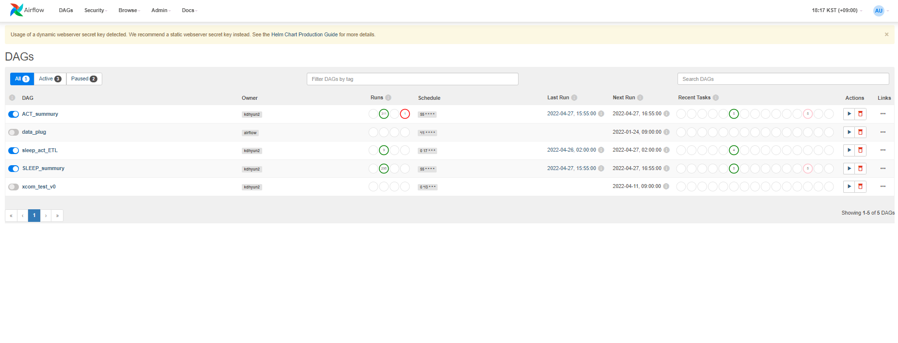 - 우선 사내에서 운영하고있는 K8S가 있었기 때문이며 해당 K8S는 MLOps를 통해서 배포된 모델 API가 동작하는 용도로만 쓰이고 있었음. 리소스가 무려 코어 12개 메모리 48기가의 내용물을 가지고 있었음에도 특별하게 활용되고 있지 않았기 때문에 남는 리소스를 활용하기 위해서 K8S에 Airflow를 올리는 방향으로 결정