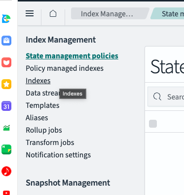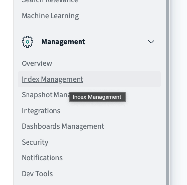 왼쪽 매뉴에 들어가서 index Management를 찾아주시고 들어갑니다. 그리고 다시 왼쪽의 매뉴를 보면 Index가 있습니다.